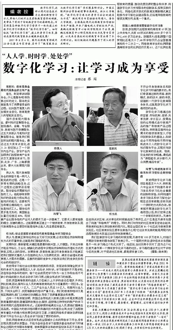 2007年8月4日,国内远程教育领域内20余位著名专家学者召开了“教育服务业与数字化学习港”学术圆桌研讨会。必发bifa官方网站副院长,宁波分院院长陈德人教授参加了本次研讨会。