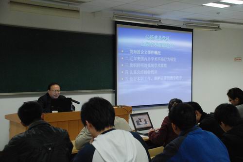 2009年3月31日,浙江大学计算机学院博士生导师孔繁胜教授给研究生们作了《弘扬求是学风,加强学术道德建设》的主题报告。