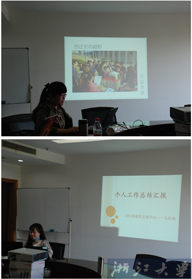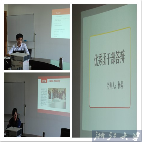 会上,各位优秀团干候选人分别就自己在过去半年中的思想,学习,社会工作和生活等方面作了详细的PPT展示,并与大家进行了经验交流。各位候选人的答辩充分突出自己的优势,各具特色。1306班的于茜同学是团支部书记,同时又是软件学院研究生会文体部部长。她不仅组织团支部开展了“创业之星”优秀学长座谈会,余姚大水被困同学分享应急处理经验,参观宁波市残障康复中心等一系列支部活动。同时组织了团支部同学开展“我心目中的优秀研究生党员”主题活动,并参加浙江大学研究生支部书记技能大赛获得二等奖。此外,作为文体部部长,她还积极负责研会的篮球赛、元旦晚会等活动,其能力和努力都令人动容。