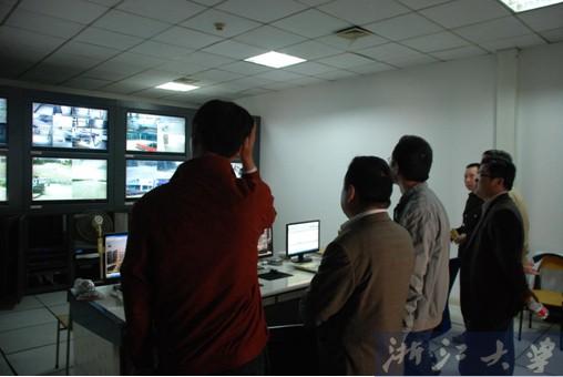 学院领导实地检查了监控、消控系统,听取了安全保卫办主任姚国友老师对防控系统日常运行、保养、存储情况及重点部位图像识别系统的概要介绍。