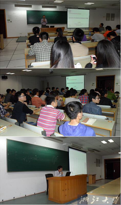 9月22日晚,软件学院2014级新生始业教育讲座在N212教室开讲。学院副院长卜佳俊教授为全体新生做了有关“研究生学术规范与论文写作”的第一场讲座,卜教授深入浅出的讲座让研究生新生懂得了在今后的研究以及成果发表过程中,如何按照法律、法规,规范开展工作,防止学术失范行为的发生,杜绝学术失德行为的出现。卜教授内容丰富、见解独到的讲座博得阵阵掌声,在促进研究生学风建设,规范学术活动中具有重要的价值和意义。