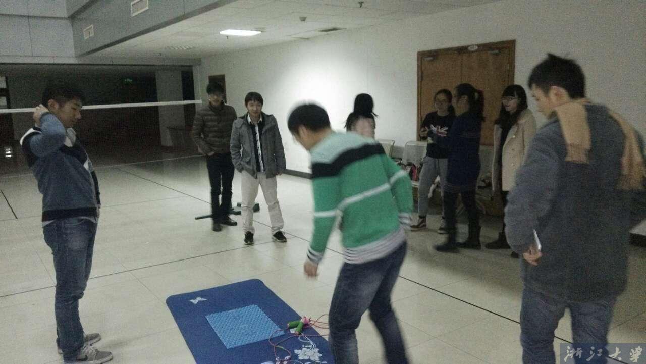 同城党团支部同学相聚于大家熟悉而亲切的学院教学楼大厅。活动分为两个环节。由于冬季天气比较寒冷,我们先举行了趣味运动会进行热身,项目有指压板接力跳绳、踢毽子、躲避球、5人6足共4个环节。