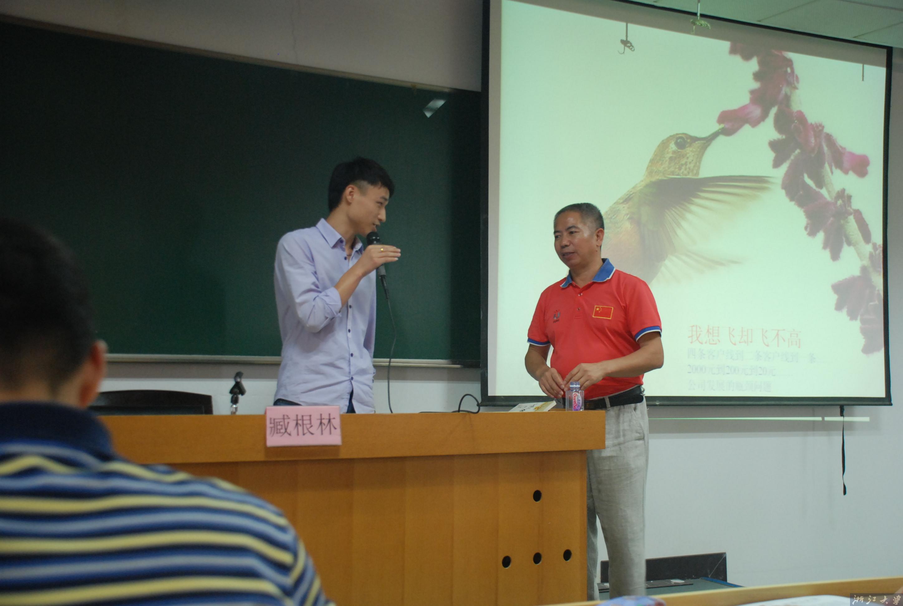 其次,臧博士用4张照片给大家分享了他自己分别从上大学,工作,创业到现在成为公司董事长的整个生涯经历。包括如何抓住机会,如何勇于迈出自己的第一步,如何处理危机,如何先做人后做事,以及创业的一些注意事项。他强调:“同学们要学会用积极的心态去面对困难,多学一点专业技术之外的技能,同时注重综合能力的培养”。期间不时与同学们进行互动,并赠送自己的小说和散文集作品。