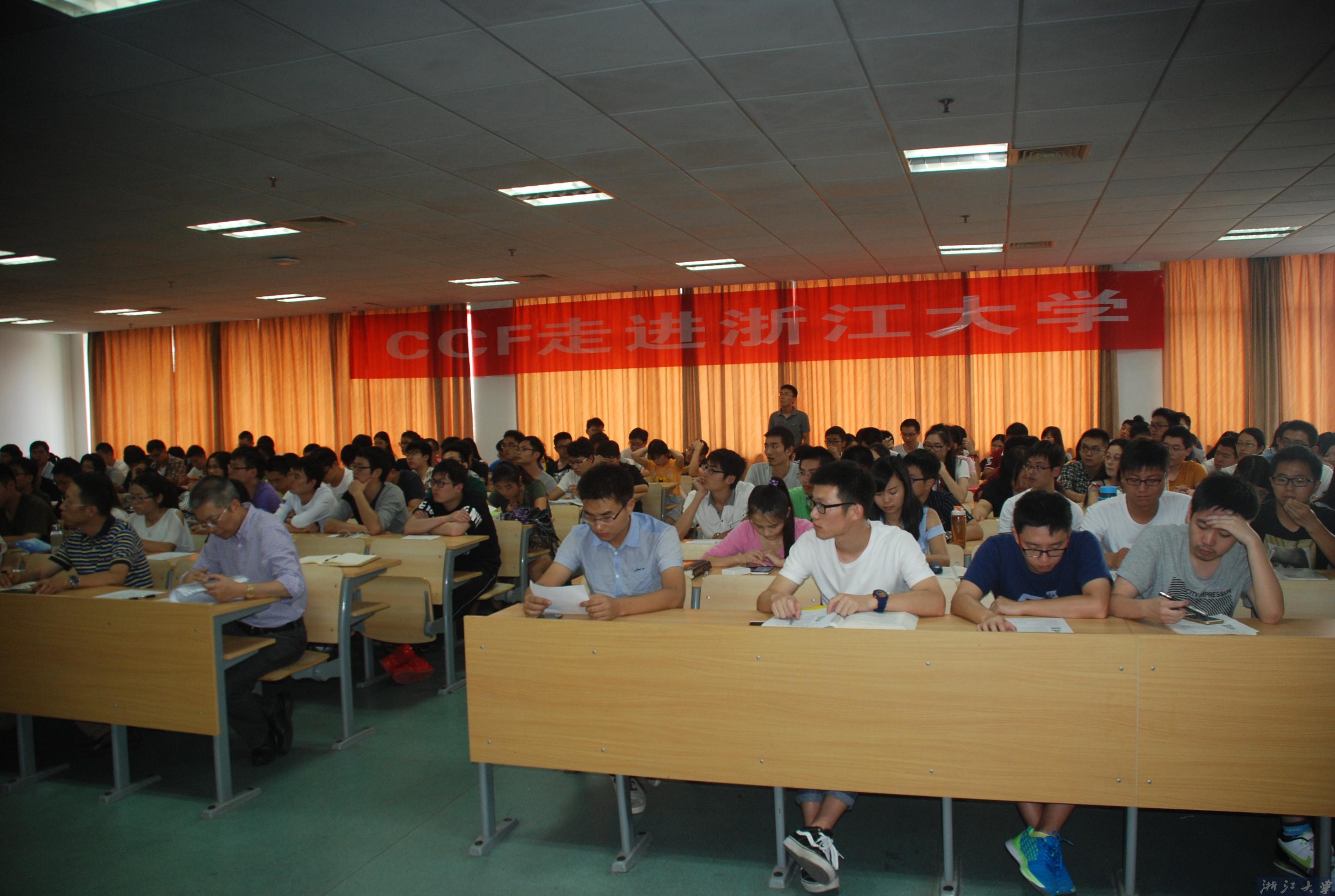 臧博士是浙江人,到目前为止,做过的讲座高达300余场。他说:“来到浙江大学,就像回到家里一样,很亲切”。先对中国计算机学会(CCF)进行简单介绍后,他便开始生涯规划的正式讲解。首先,他以如何引导自己儿子进行生涯规划为例,为大家进行一一阐述。他说:“我们不管做什么,一定要有方向,目标要清晰,一步一步去实现”。为此,他儿子在大三之前拿到10项以上的专利,并凭借突出的实力如愿进入理想的企业。接着,他又讲述了对“人才”的理解。他认为,人才由三部分组成。一是自身的身体素质,给人的第一印象要好;二是个人品质要端正;三是要有多方面的技能。以上几部分协调工作,才能达到最好的效果。