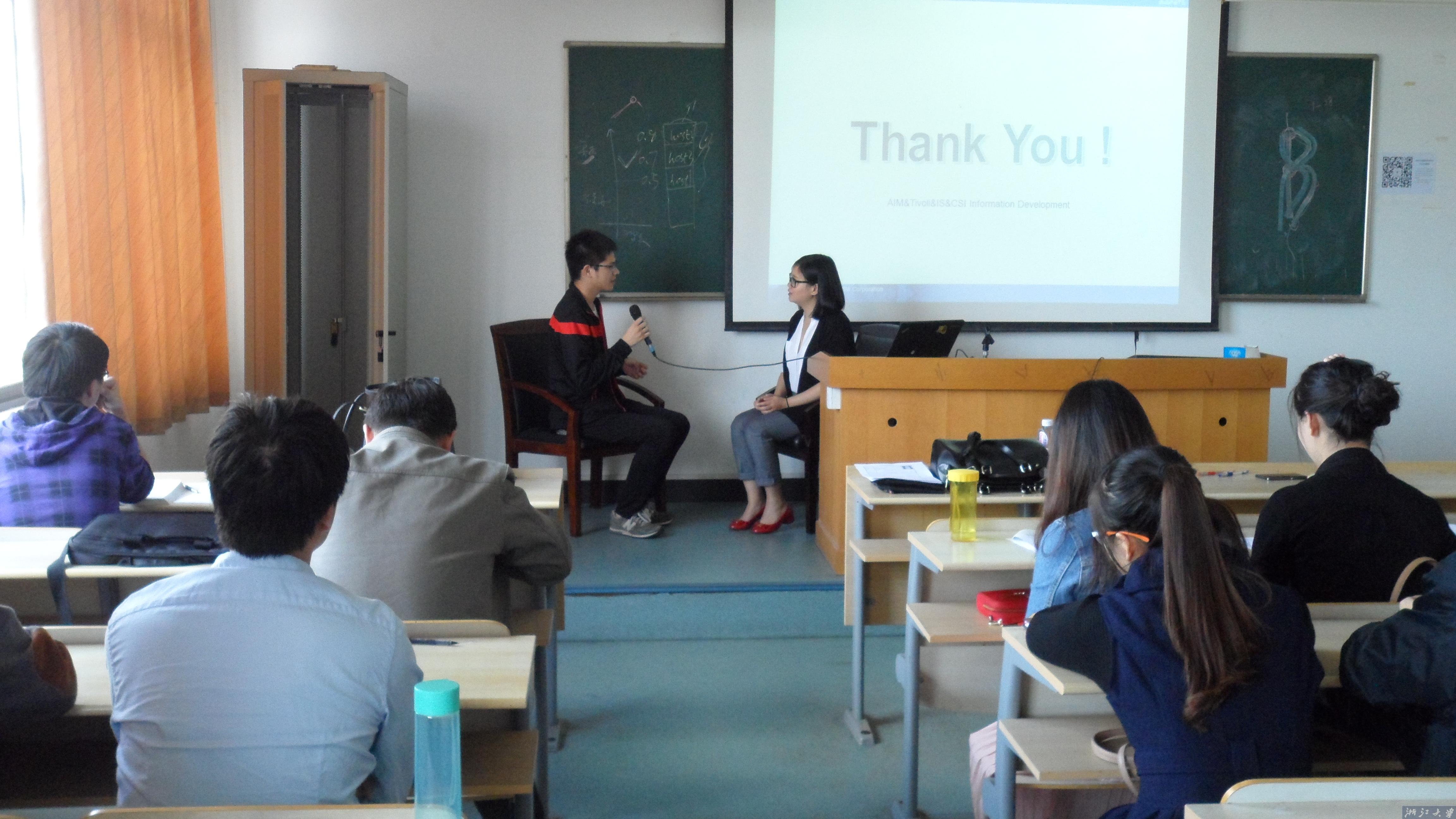 10月21日,为提高同学们对英文简历的制作与英语面试的技巧,学院邀请到IBM软件开发部技术文档工程师江洁、IBM用户技术部技术文档工程师岑再两位老师在310教室为同学们进行英文简历与英文面试讲座。