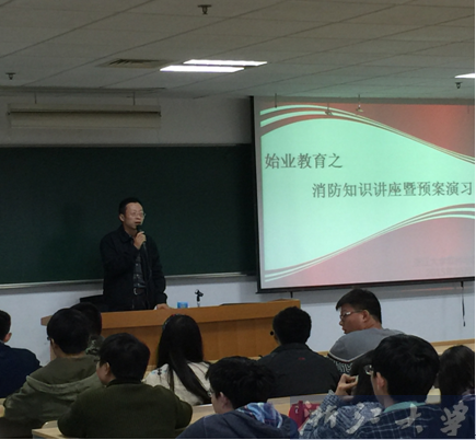 为了提高同学们的防火减灾安全意识及消防安全知识普及,2015年10月30日下午1时在N312教室举行软件学院消防知识讲座,本次讲座由学院党委副书记胡昱东老师主持,高新区消防大队宣传干事王俊老师主讲。