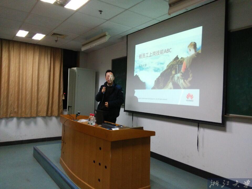 为了提高同学们“职场”适应能力,2015年12月2日晚6时在教学楼N310进行了一场关于团队建设的讲座,本次讲座邀请了华为HR蒋小伟经理作为主讲,华为HR陈排排协助讲座;讲座由学院党委副书记胡昱东老师主持。