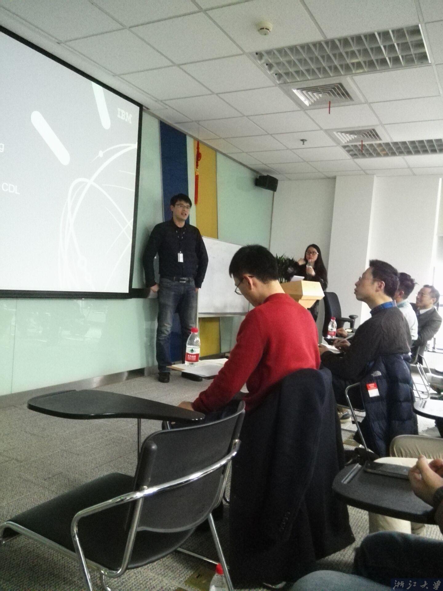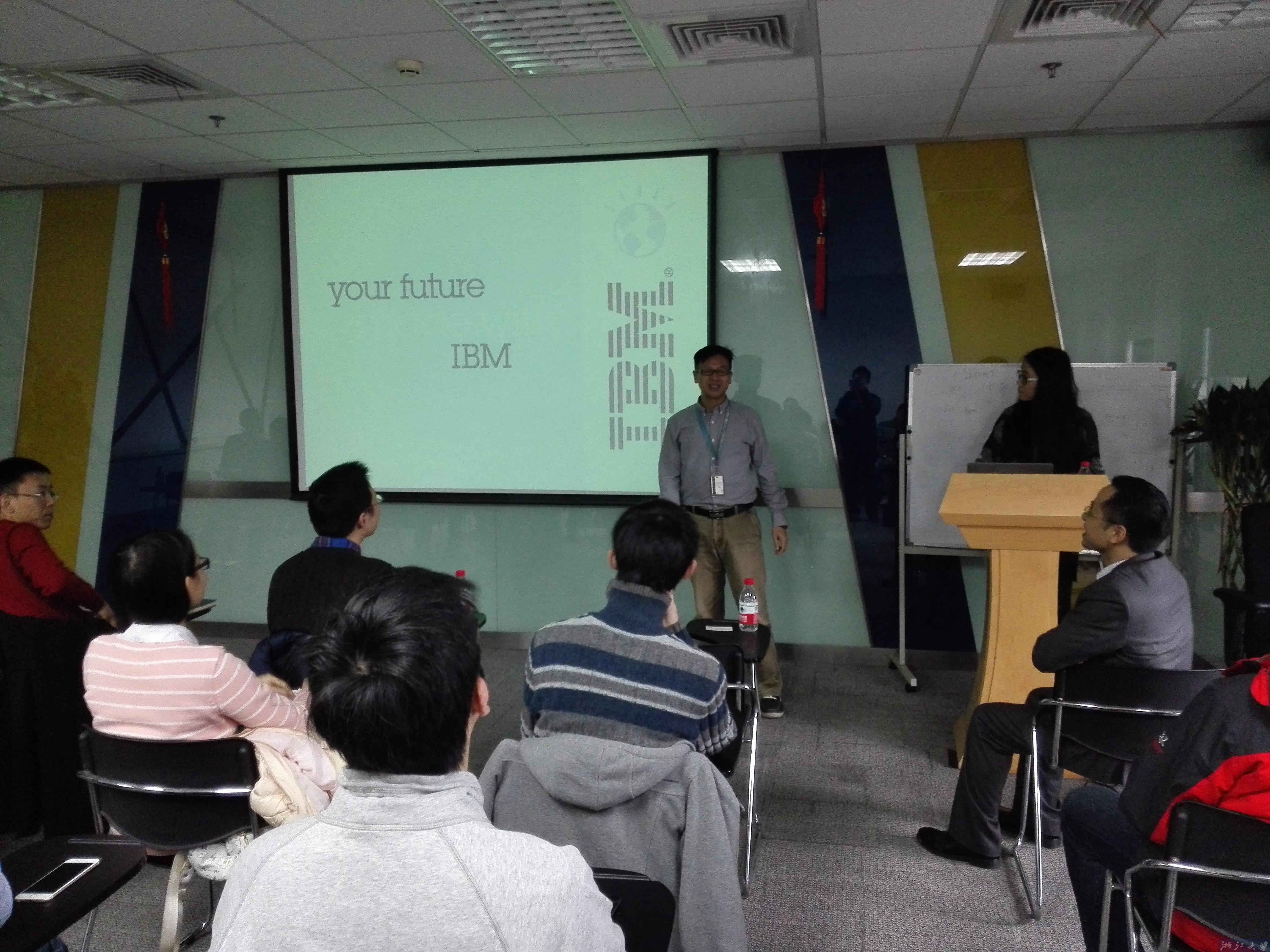 一开场,胡昱东对宁波IBM公司表达了由衷地感谢,并简要阐述本次走访对加深校企合作及促进学生成长的意义。接着,宁波IBM负责人郑虹先生对IBM公司进行了总体的介绍,主要包括IBM历史、IBM价值观、IBM多元企业文化、IBM主要成就、IBM工作与生活及IBM主要开发中心等方面;并介绍了IBM最新的计划、战略布局等;最后对宁波IBM研发中心进行了详细的介绍。